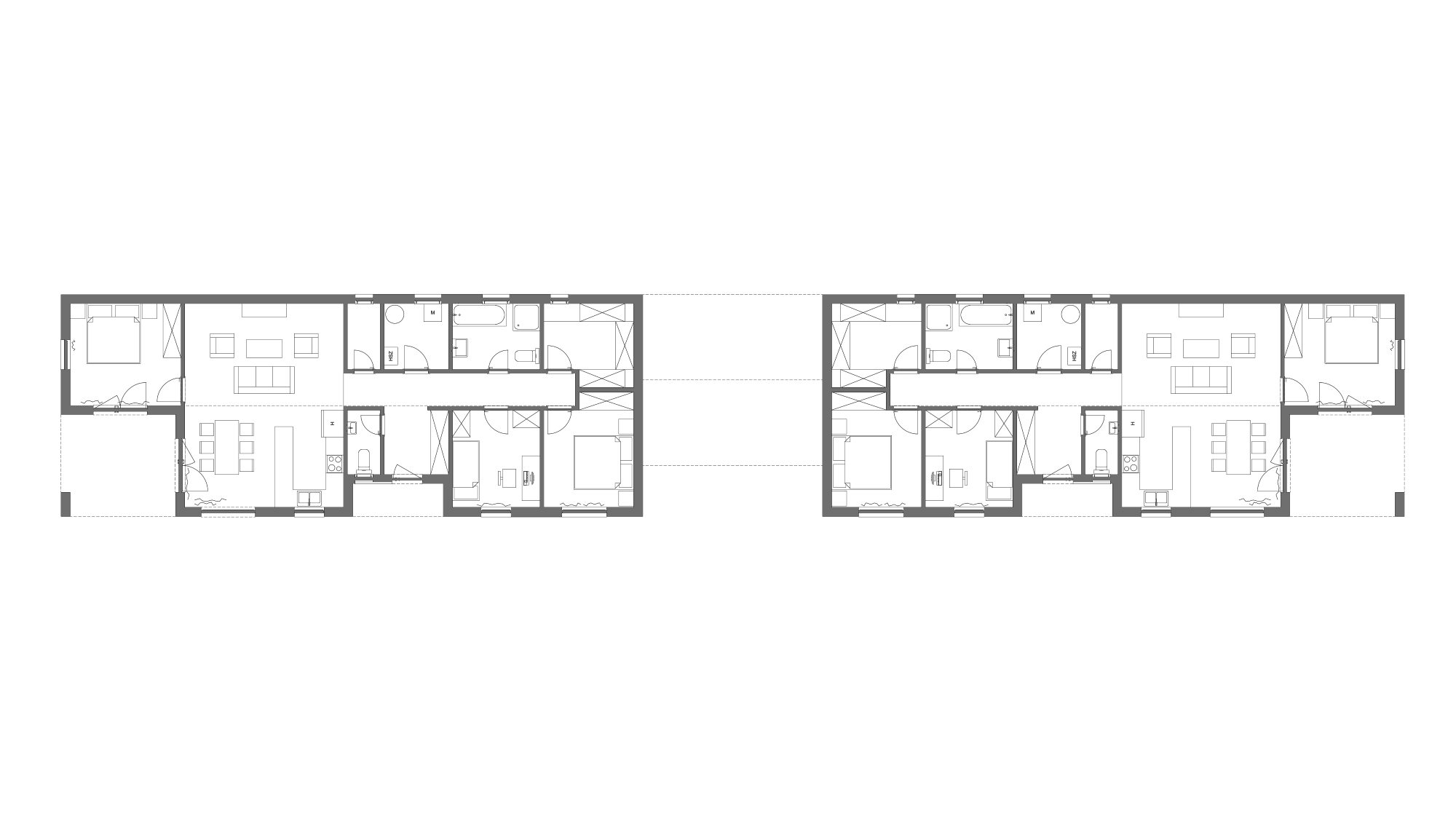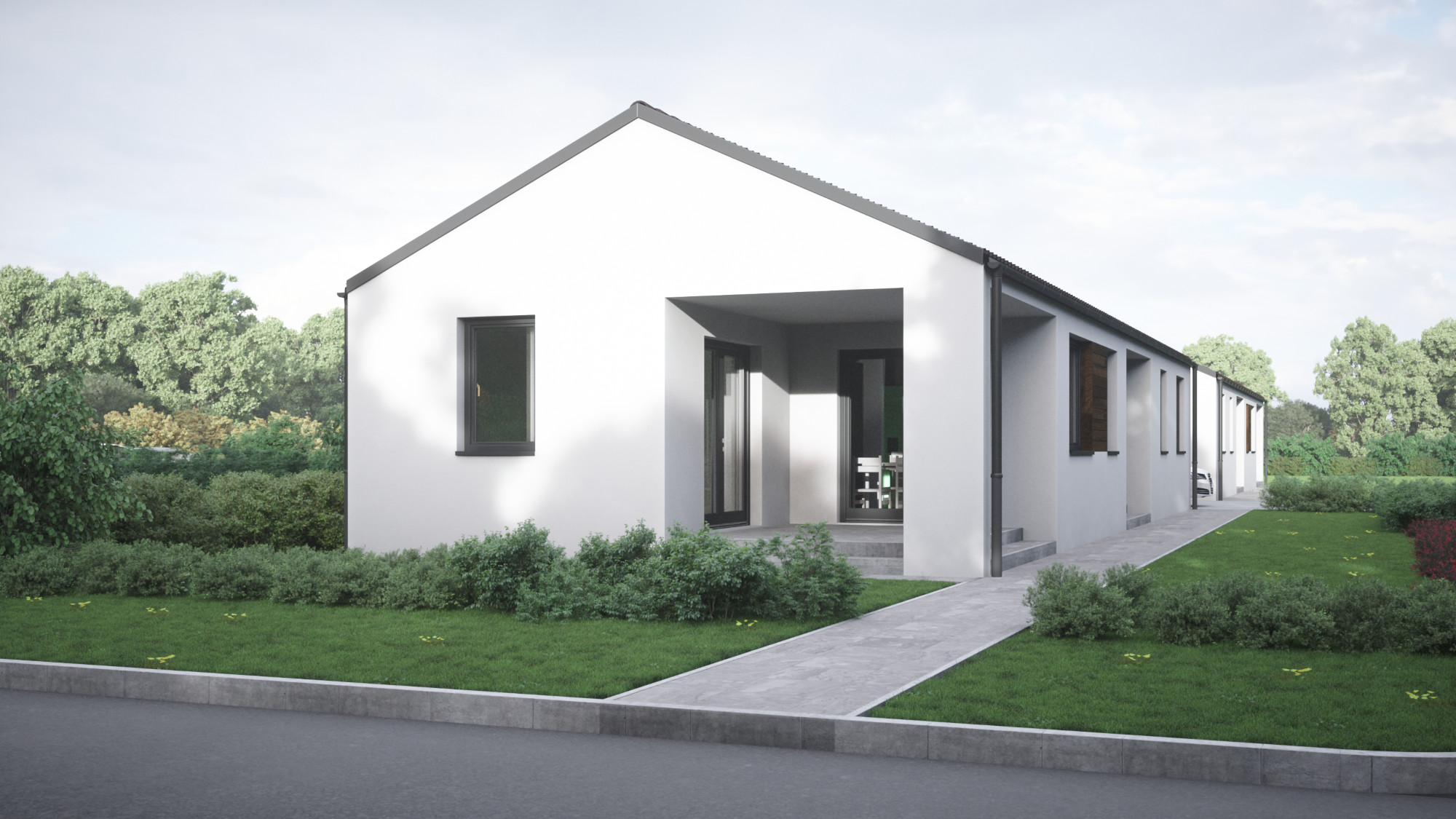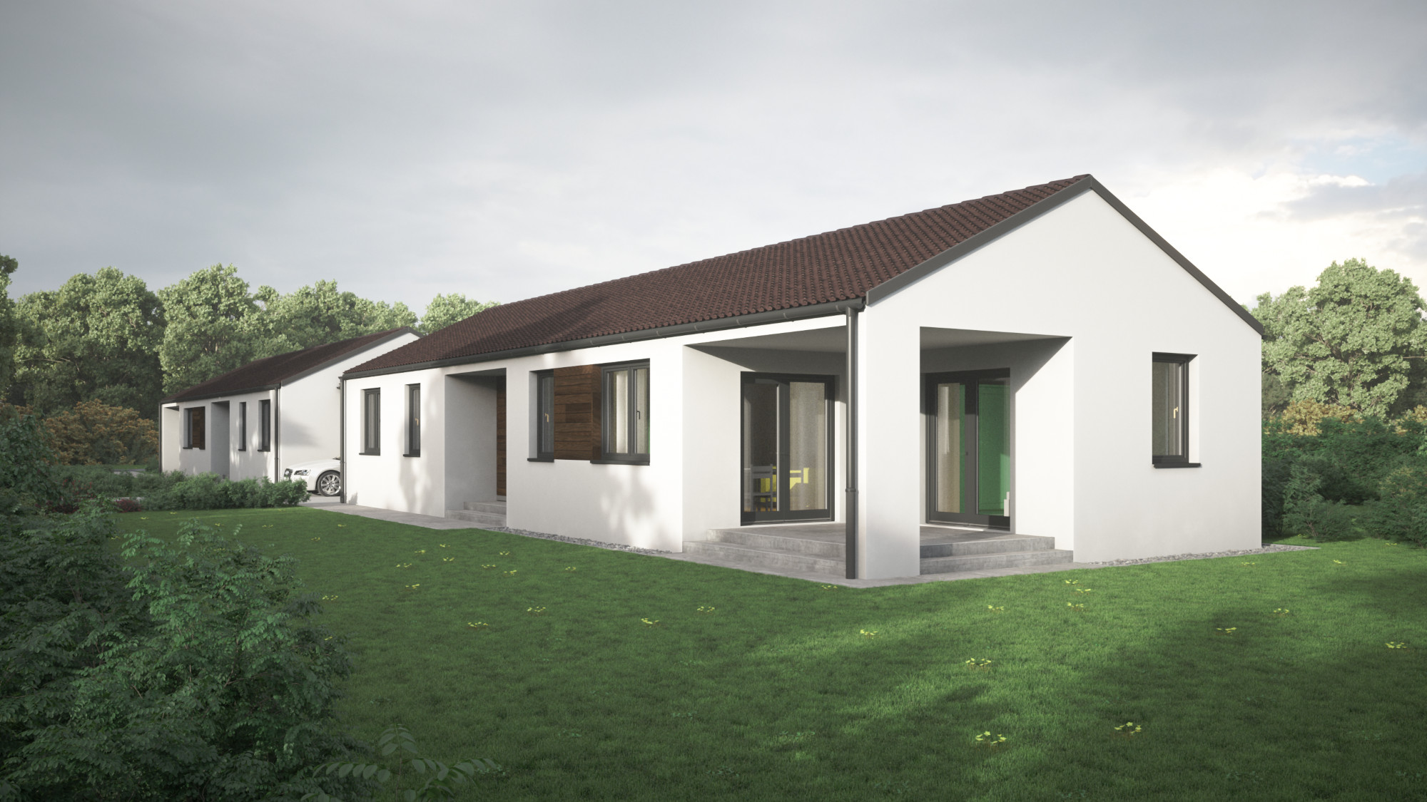 Egyszerű, funkcionális elrendezésű kétlakásos társasház tervezésére kaptunk megbízást. Fontos megrendelői szempont volt az épület minél nagyobb arányú üzemi előregyártása, ezzel csökkentve a helyszíni munkavégzés mennyiségét és időigényét.