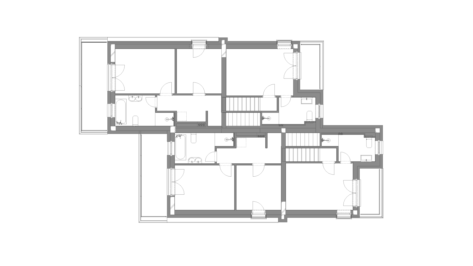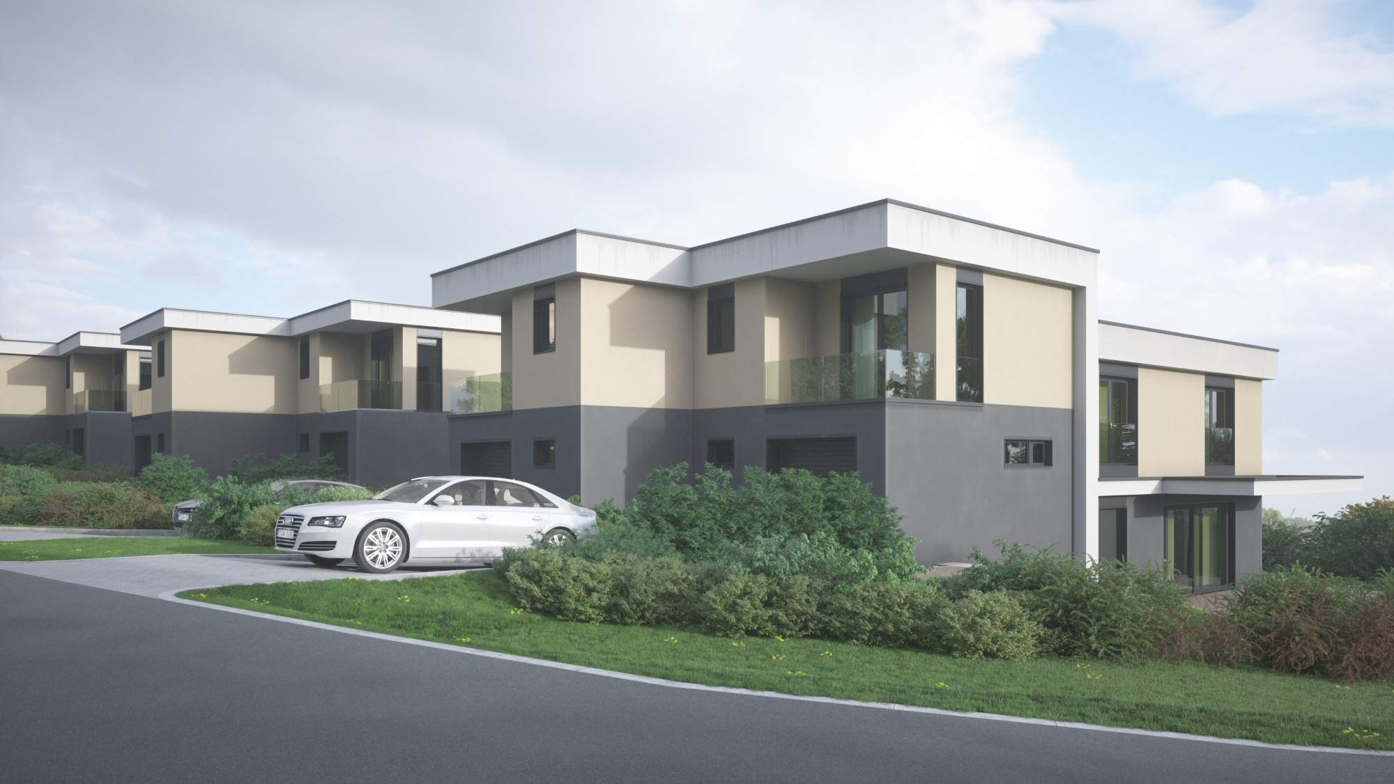 Mogyoród délkeleti részén, több egymással szomszédos telekre terveztünk kétlakásos házakat. A beépítés módja garantálja a lakások önálló használhatóságát, és biztosítja az egyes lakásokhoz tartozó kertrészek intimitását.