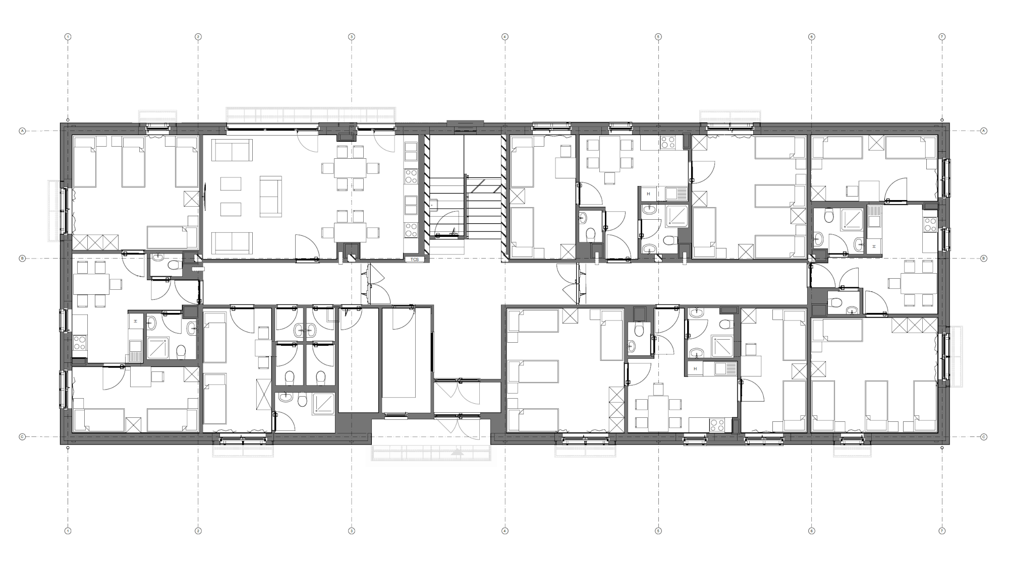 Az ipari területen működő könnyűipari üzem dolgozói részére épülő szálláshely terveit készítettük el. A cél egy egyszerűen üzemeltethető, ugyanakkor komfortos elhelyezést biztosító épület létrehozása volt, amely kialakításával és felszereltségével hosszabb távú tartózkodásra is megfelelő környezetet biztosít.