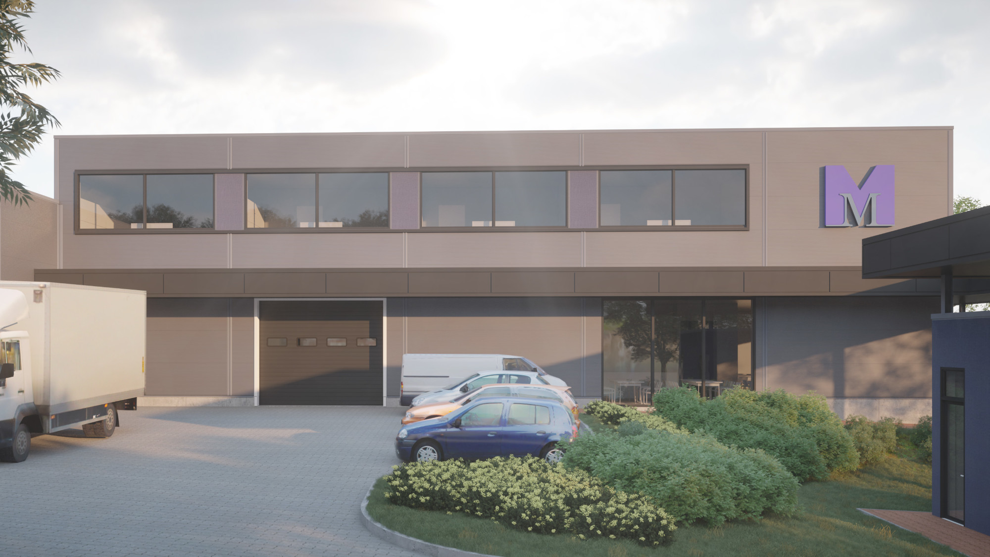A meglévő beépítésből felhasználtuk az utcára merőleges telepítésű, dongatetős csarnokrészt, míg a rossz kihasználású, alacsony belmagasságú toldaléképület elbontását terveztük. A megmaradó traktusból érhető el a háromhajós, acélszerkezetű, új technológiai csarnok. Az irodák és szociális kiszolgáló helyiségek számára a telephely új arculatát is meghatározó, kétszintes, vasbetonvázas épületet terveztünk.