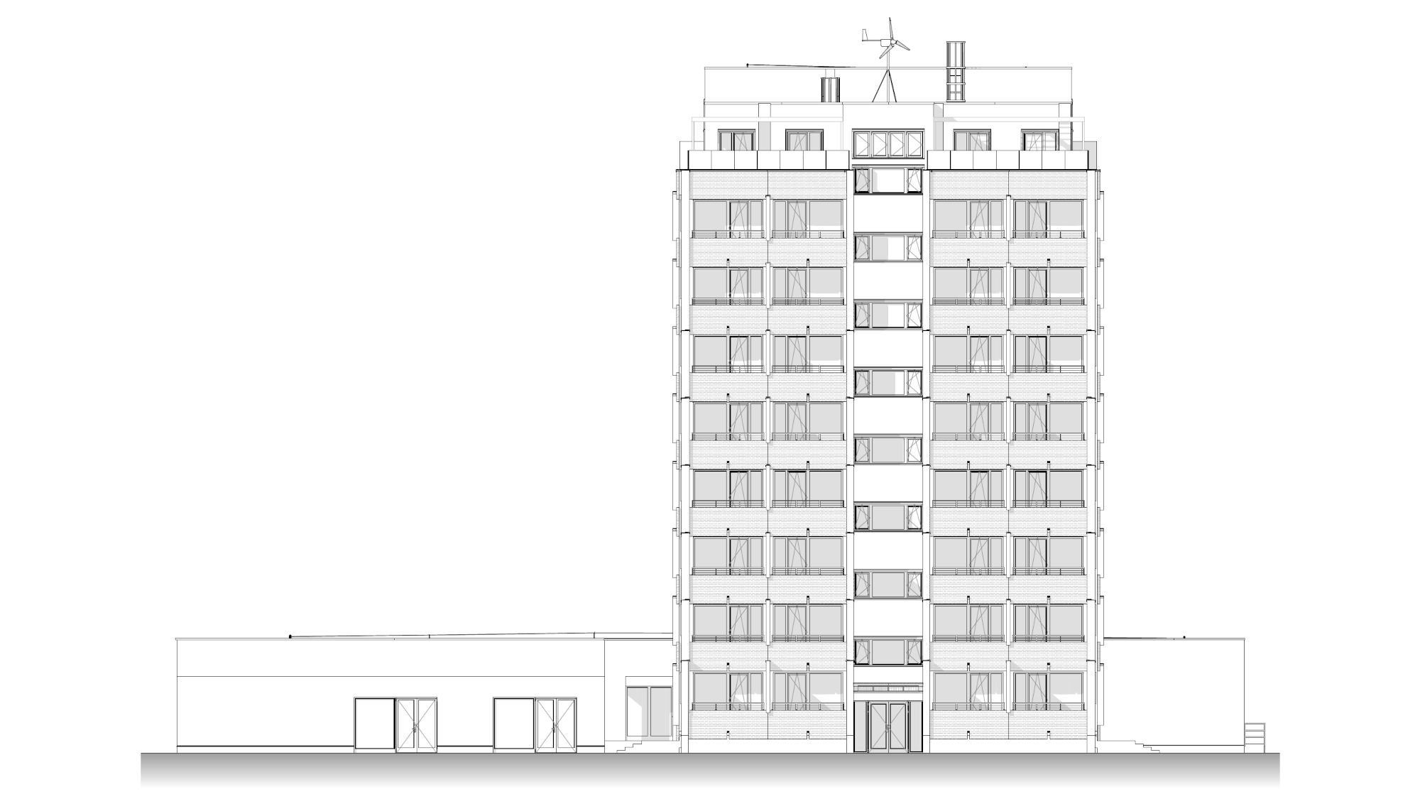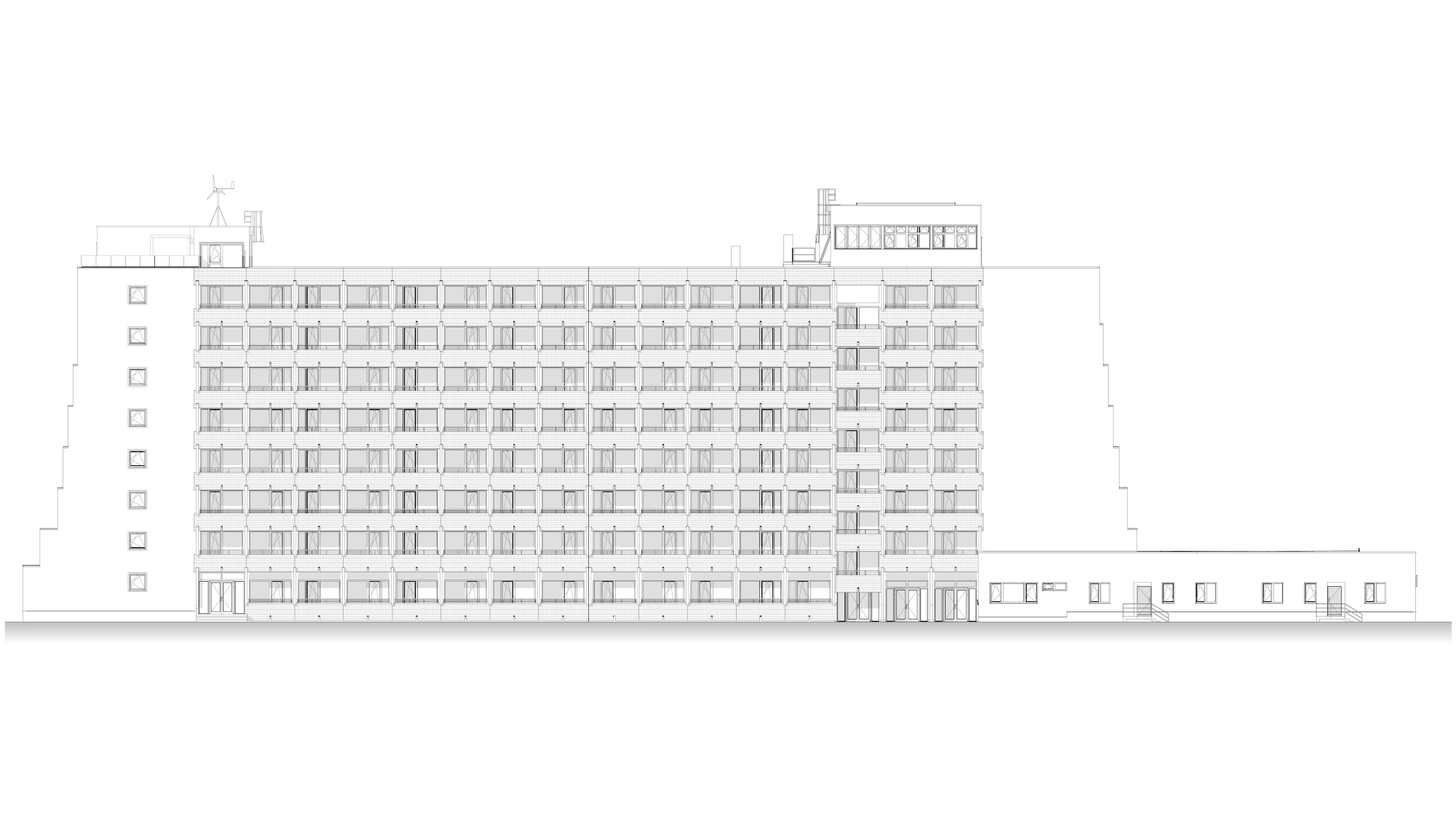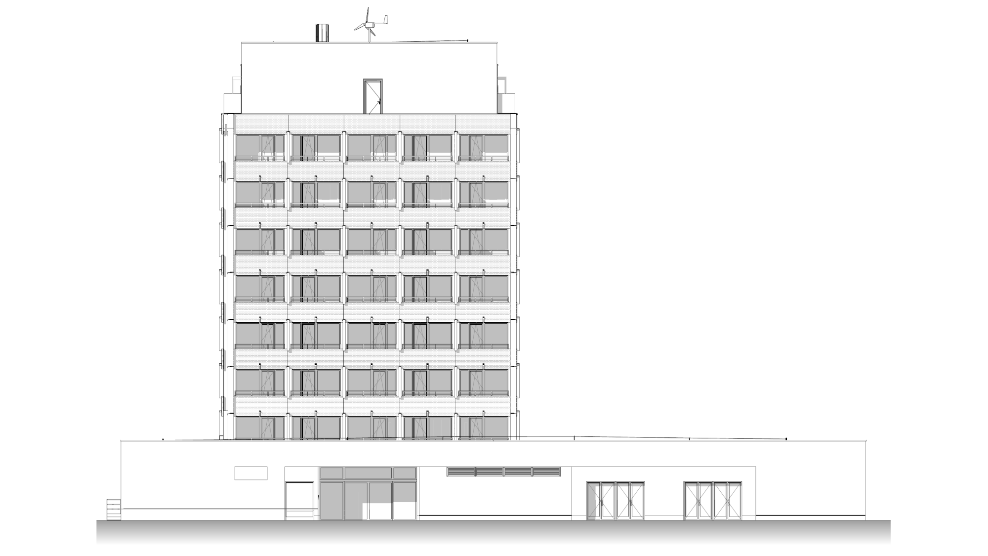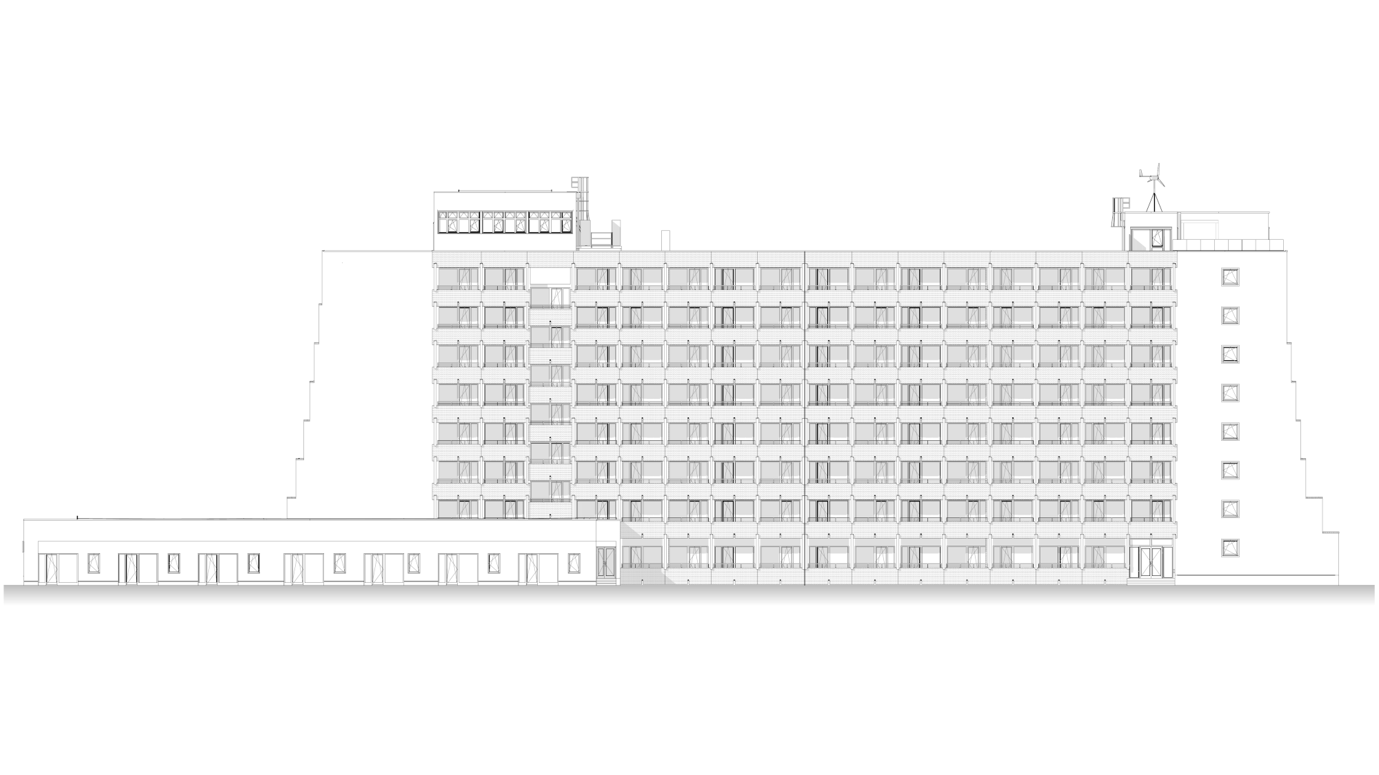 A tervezési feladat az épület energetikai korszerűsítésére is kiterjedt. A zárófödémre napelemes rendszert terveztünk, míg a helyiségek temperálását hőszivattyús megoldással biztosítottuk.